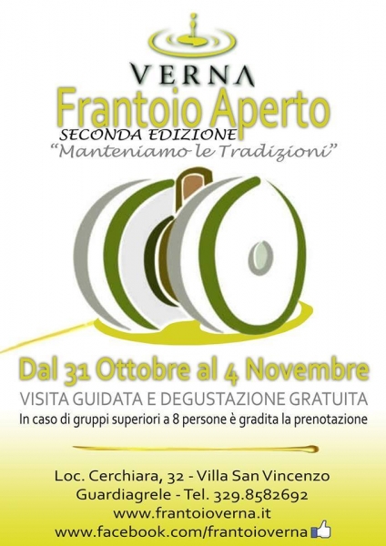 L'Azienda Verna sarà così lieta di ospitare tutti quanti coloro fossero interessati a conoscere da vicino quest'attività agricola, prevedendo anche deliziosi assaggi dell'olio appena prodotto.