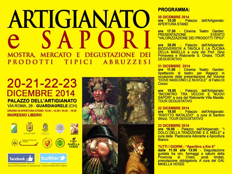 ore 20.00 – Palazzo dell'Artigianato: BIODIVERSITA' A TAVOLA E LA CUCINA DELLA MAIELLA a cura del Prof. Gino Primavera e Ristorante S. Chiara. TOUR DEGUSTATIVO