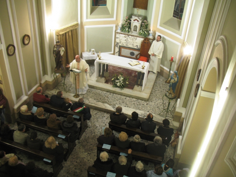 Per tre settimane l'ente presieduto da Gianfranco Marsibilio ha lavorato alla ristrutturazione degli ambienti della chiesetta, normalmente destinati a ospitare l'esposizione degli ori di pregio (Orodautore nella 41a edizione, la scorsa estate) nel corso della Mostra che si tiene ogni anno nei primi venti giorni di agosto. Sono tornati i banchi per i fedeli e l'altare è stato addobbato come prevede la liturgia. La cappella dell'istituto delle suore francescane non era stata mai sconsacrata per un accordo tra l'ente e la Curia nella fase del passaggio di consegne dello storico edificio risalente al Settecento, uno dei palazzi di maggiore valenza artistica e architettonica del borgo antico, sede del convento e della scuola a partire dal 1886, quando la famiglia che l'aveva eretto lo cedette all'ordine francescano. «Nella prima funzione», spiega Marsibilio, «abbiamo appunto voluto commemorare la figura del nostro fondatore, che all'acquisizione del convento aveva lavorato per anni in vista di stabilirvi la sede permanente dell'Ente Mostra, come poi è stato».