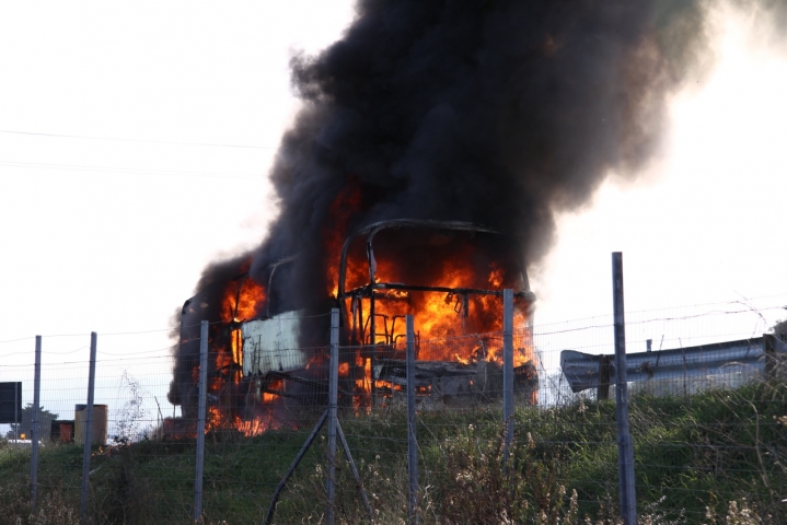 In territorio di Torino di Sangro, tra i caselli di Vasto Nord/Casalbordino e Val di Sangro, si sono levate le fiamme da un mezzo del servizio di trasporto pubblico regionale dell'Arpa, comunque privo di passeggeri.
