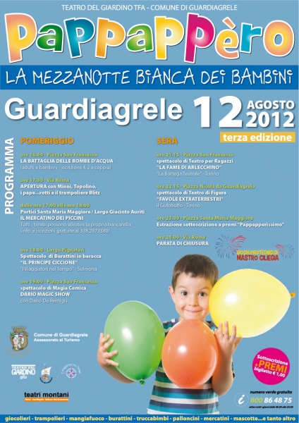 Domenica 12 Agosto, il Teatro del Guardino TFA, Comune Di Guardiagrele, organizza  la terza edizione di Papparappèro, la Mezzanotte Bianca dei bambini.