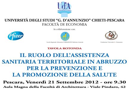 Venerdì 21 settembre riprenderà a Pescara l’attività dei Corsi di Perfezionamento in “Economia e Organizzazione dei Servizi Sanitari” e “Management dei Sistemi Sanitari” della Facoltà di Economia della Università degli Studi G.d’Annunzio con la tavola rotonda :