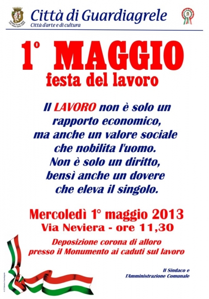 Mercoledì 1° Maggio 2013, Festa del lavoro e dei lavoratori.