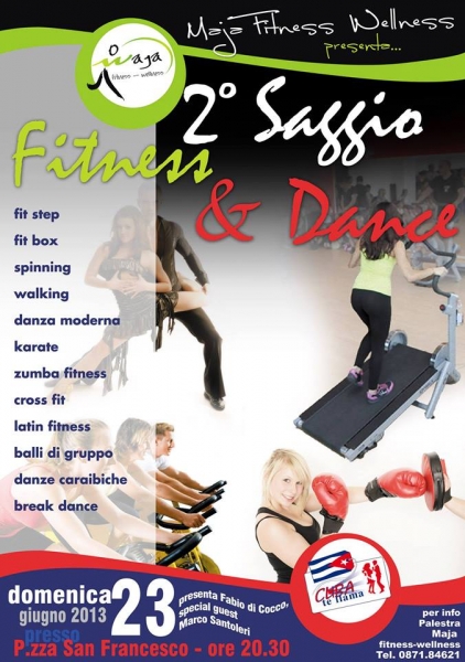Domenica 23 Giugno alle ore 20.30 la suggestiva cornice di piazza San Francesco ospiterà infatti il 2^ Saggio di Fitness e Dance, un accattivante incontro fra sport e spettacolo nel cuore di Guardiagrele: movimento, energia, musica, colori, fanstasia, il tutto come insegna di uno stile di vita sano, che scaturisce dal benessere non solo fisico ma anche mentale e spirituale.