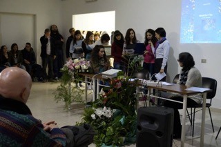 E’ stata poi la volta dell’alunna Maria Pinti che ha presentato il suo e-book “Qualche vita – Racconti e Riflessioni” nato per omaggiare la Professoressa Guidotti che è stata sempre sua grande ispiratrice, oltre che amica, compagna di viaggio e professoressa amorevole. L’allieva ha colto quindi l’occasione per invitare tutti i suoi compagni a partecipare numerosi al concorso letterario. Un altro momento di profonda commozione è seguito con una poesia che l’alunno Antonio Masciantonio ha dedicato “a Floriana”. Altri alunni hanno poi condiviso con la platea i premi e i riconoscimenti che la scuola ha ottenuto grazie ai tanti concorsi e attività intrapresi insieme alla Professoressa nel corso degli anni scolastici, ricordando ulteriormente la creatività, l’intraprendenza e la voglia di spronare i propri allievi a mettersi in gioco, partecipare e coltivare le proprie doti e passioni. La presentazione si è conclusa con una bellissima interpretazione del brano “Over the Rainbow” eseguita al violino dall’alunna Erica Loiacono e alla chitarra dall’alunna Chiara Ranieri. A seguito della presentazione ci si è ritrovati tutti intorno ad un buffet gentilmente offerto dalla scuola, dove si è continuato a ricordare con affetto e allegria la Professoressa Floriana Guidotti nello spirito che l’ha sempre contraddistinta.