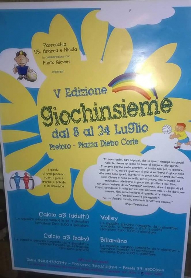 Non c'è un momento della giornata che rimane indifferente alla lodevole iniziativa del Punto Giovani, sezione pretorese Dell'Azione Cattolica.
