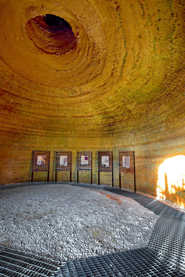 La Grotta, recuperata con un intervento architettonico minimal ed elegante dell'arch. Lorenzo Fosco, è accessibile tramite un percorso immerso nella natura e ben pensato per inserirsi e valorizzare il contesto esistente. Dopo poche settimane dalla presentazione, il piccolo “pantheon di sabbia” di San Martino sulla Marrucina (risalente agli inizi del XVII secolo) ed il suo progetto di recupero, iniziano già ad attirare l’attenzione fuori provincia. Infatti mercoledi 9 settembre, alle ore 20.20, negli spazi dell’ex Mattatoio in via Gran Sasso a Pescara, la Grotta della Neve sarà protagonista dei venti progetti selezionati per il “PechaKucha Night Pescara 2015, un evento promosso dallo studio associato C.A.Sa (team di architetti professionisti che si occupa principalmente di progettazioni bioecologiche) e lo studio Zero85.