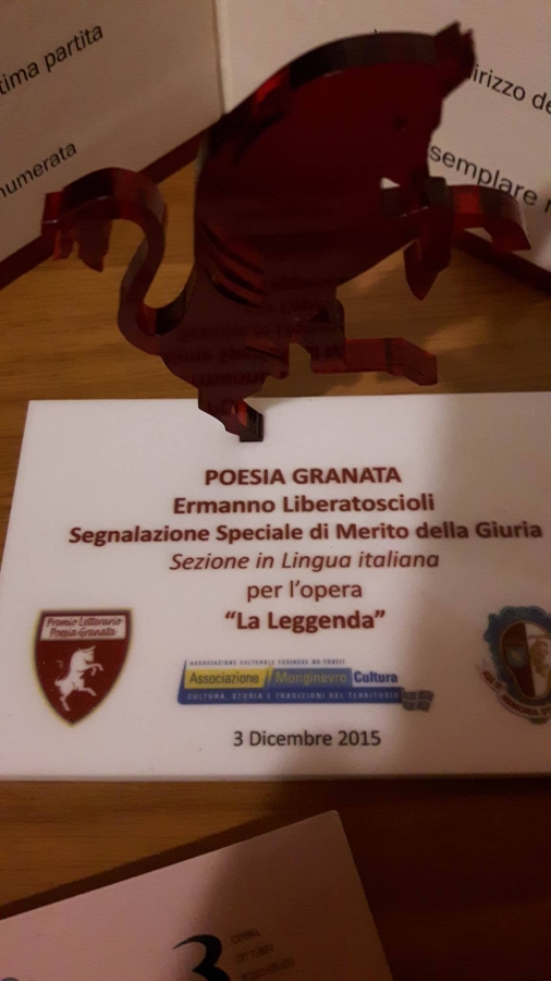 Così, guardando oltre la classifica...c'è una grandissima soddisfazione: la Segnalazione Speciale di Merito della Giuria all'interno del Premio Letterario 2015 "Poesia Granata" (Sezione in Lingua Italiana).