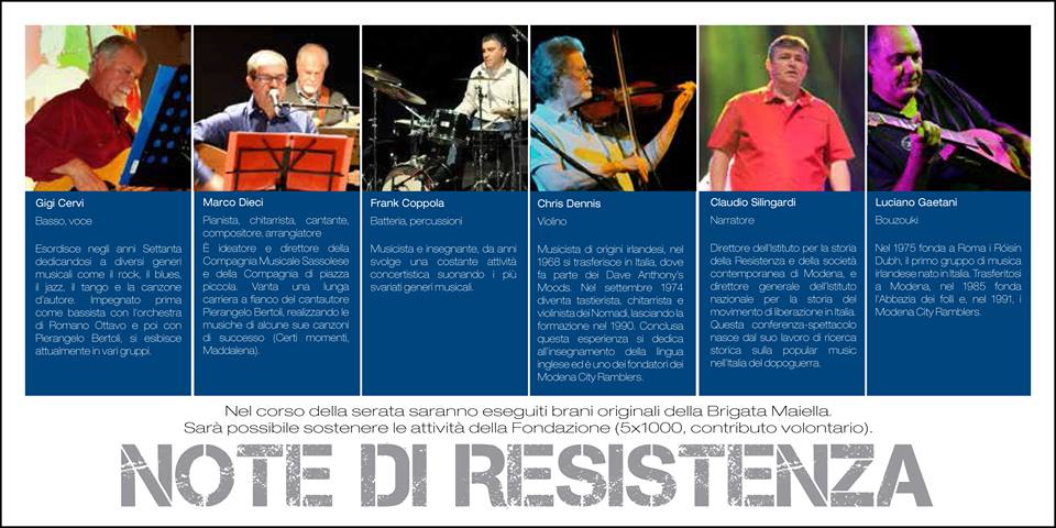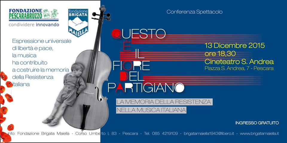 “Per favorire la memoria dei fatti storici, ma anche per creare le condizioni affinché la Resistenza non sia solo argomento di conoscenza astratta e scolastica, bensì la radice comune e viva del nostro sentire il presente”, afferma il Presidente, Nicola Mattoscio, “la Fondazione Brigata Maiella torna a proporre un’iniziativa gratuita, che invita a riflettere sul rapporto tra canzone e impegno sociale”.