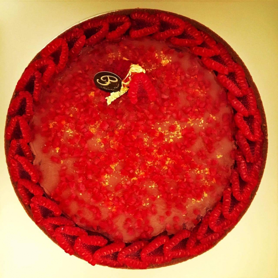 Togliete la pellicola, lucidatela con della gelatina alimentare e terminate con la decorazione dei lamponi freschi.”