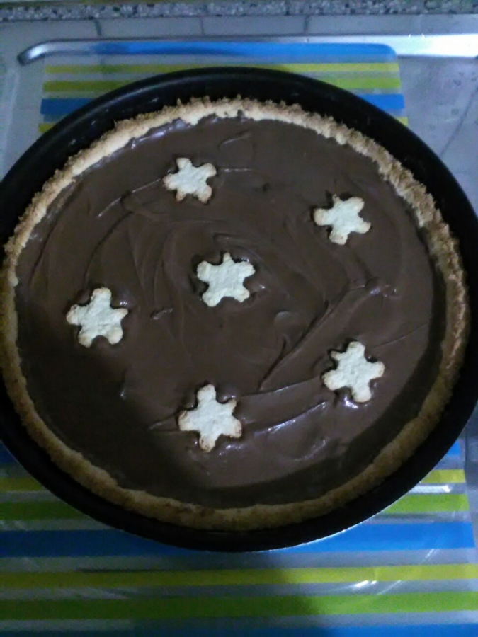 Cuocete a 180°C per circa 40 minuti (crostata e biscotti), stendete uno strato di Nutella e rimettete in forno per qualche altro minuto. Decorate con i biscottini.