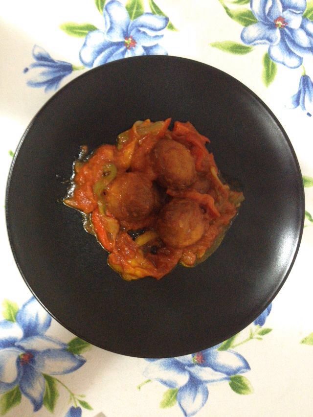 Scolare le polpette su carta assorbente e metterle nel sugo, facendo ben insaporire il tutto.
