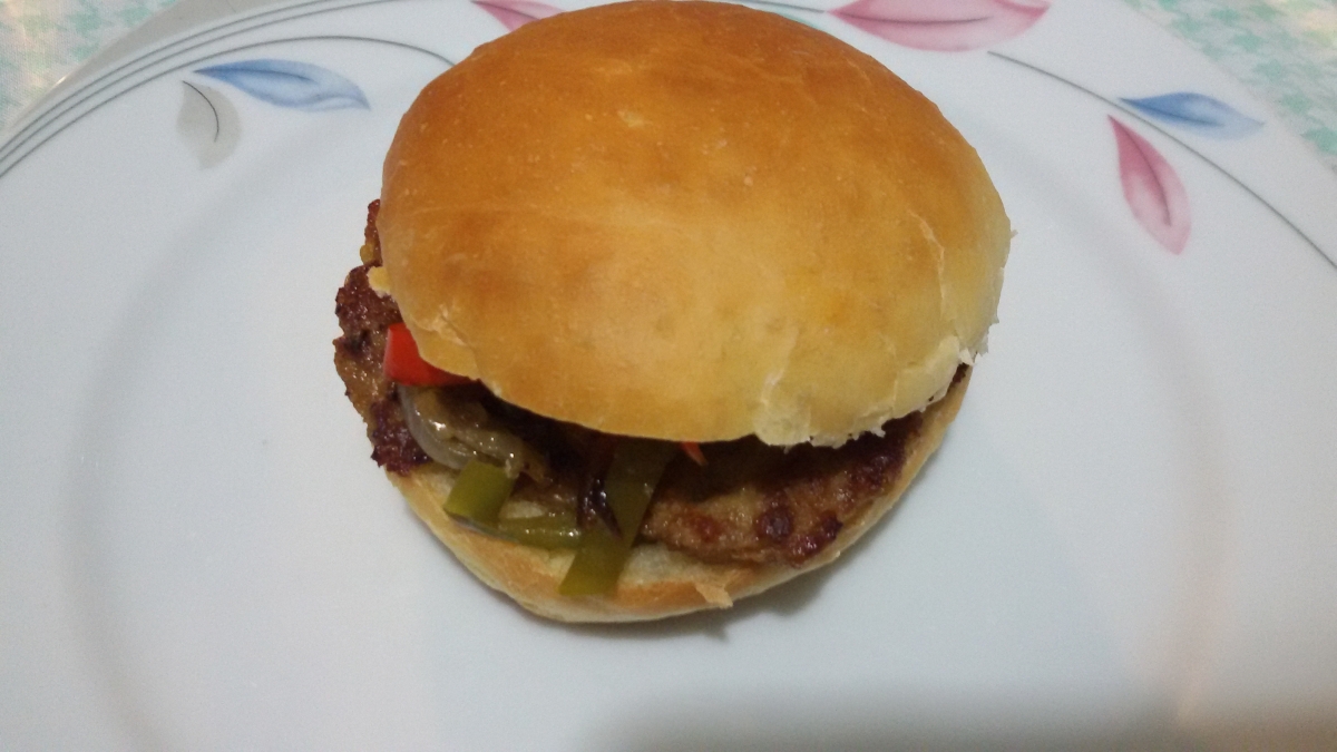 Componete gli hamburger, tagliando a metà i panini e aggiungendo la carne e i peperoni.