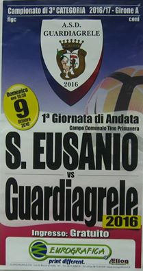 Domenica alle ore 15.30 al campo sportivo “Tino Primavera” riparte il calcio guardiese. Nella prima giornata del campionato di Terza categoria si affronteranno Guardiagrele e Sant’Eusanio del Sangro. C’è grossa attesa in città dopo un’attesa di oltre due anni a seguito della scomparsa della storica As Guardiagrele nell’estate 2014. Guardiagrele è stata abituata a palcoscenici di prestigio con una lunga militanza nel campionato di Eccellenza ed una stagione in Serie D, ora riparte dal gradino più basso ma nasce con una società solida che non vuole bruciare le tappe ma punta a fare un passo alla volta senza alcuna fretta. Questa la rosa dell’Asd Guardiagrele 2016 che da circa due mesi si sta allenando agli ordini dell’allenatore Enzo Scogna, una bandiera del calcio guardiese, e del suo vice e preparatore atletico Enio Zulli: Matteo Caramanico, Graziano Di Martino, Pierluigi D’Emilio, Nico Di Sciascio, Giuseppe Primiterra, Maldin Lera, Stefano Ferrari, Andrea Spinogatti, Dino Marroncelli, Dario Troka, Andrea De Narsdis, Simone Di Menno Di Bucchianico, Nico Rossi, Juan Pablo Calabrese, Giovanni Bosco, Riccardo Migliavacca, Cristiano Capuzzi, Stefano Caramanico, Domenico Corvo, Ivan Forlano, Domenico Fazio, Andrea Migliozzi, Giuliano Perfettibile, Elton Shehu e Arman Shiti. Questo l’organigramma societario: presidente Italo Primavera, vice presidenti Gianni Auriti e Luigi Capuzzi, segretario sportivo Giuseppe Colagreco, segretario amministrativo Massimo Mattioli. Altri componenti del direttivo: Enzo Abbonizio, Pierluigi Salomone, Gjini (Fabio) Sotiraq, Gianni Iubatti, Romeo Adorante ed Emidio De Laurentiis.