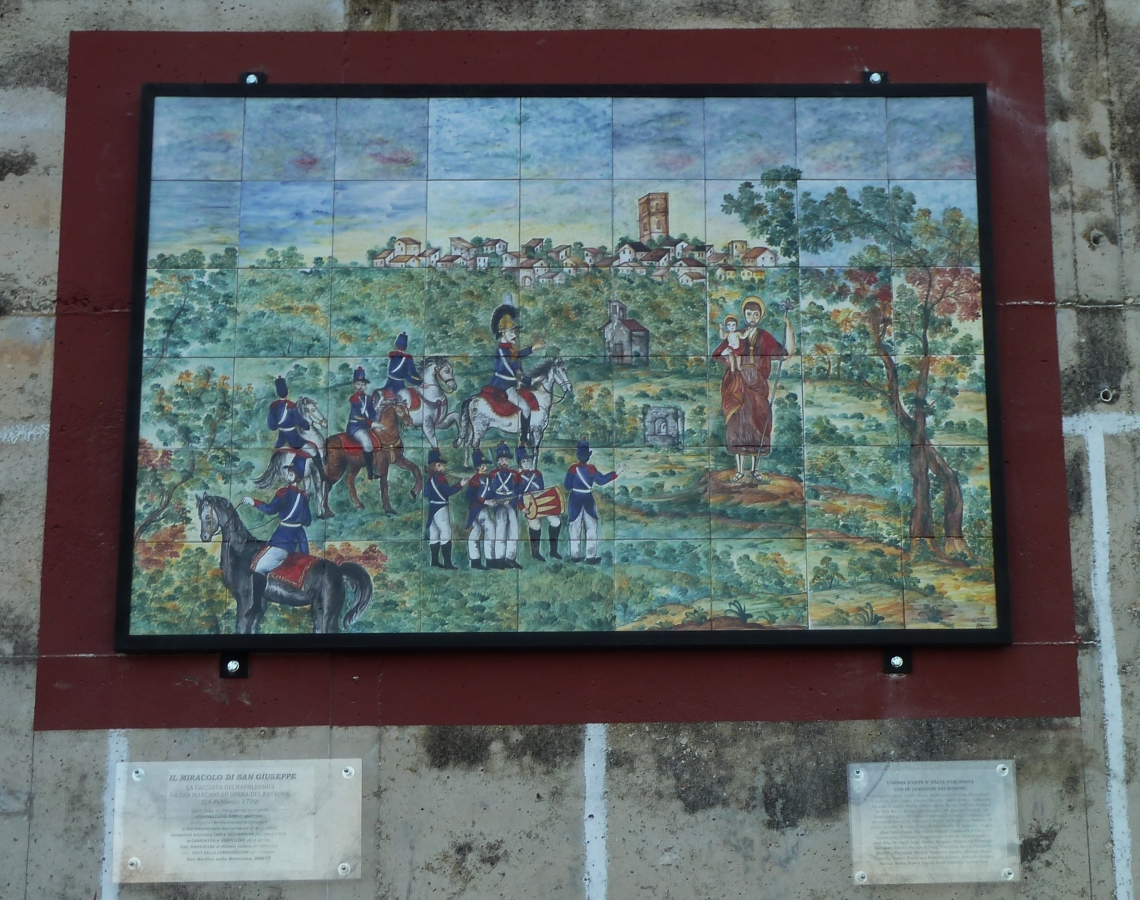A pochi giorni dalla festa patronale di San Martino sulla Marrucina (18 e 19 marzo) l’ass.ne no profit Corporazione Sancti Martini (www.sanctimartini.it) ha portato a termine una nuova ed originale iniziativa. E’ stata infatti collocata ed inaugurata la ceramica artistica dedicata al “Miracolo di San Giuseppe”, mirabilmente realizzata dagli artisti ceramisti Tasca di Rapino. L’opera si riferisce all’attacco subito dalla cittadina martinese nel 1799 da parte di un contingente di napoleonici che, diretti a distruggere la ribelle Guardiagrele, decisero di fare razzia nel paese vicino. Gli abitanti di San Martino si difesero per merito delle loro ingenti scorte di polvere da sparo e grazie all’indole battagliera che li caratterizza da sempre. La salvezza venne miracolosamente attribuita all’intervento di San Giuseppe, secondo la leggenda apparso ai napoleonici nelle vesti di un povero e poi manifestatosi con gran clamore in tutta la sua potenza (all’episodio si riferisce l’Esposizione, uno dei momenti più caratteristici della festa patronale, quando la chiesa rimane totalmente al buio e San Giuseppe è nascosto da un telo. Improvvisamente la statua viene svelata e contemporaneamente tutte le luci si accendono, con il fragore della banda e dei fuochi d’artificio che invade la parrocchiale. “Sin dalla nascita della nostra associazione, siamo sempre stati convinti che la nostra forza viene dalla nostra storia. Studiarla, preservarla e trasmetterla alle nuove generazioni, oltre a poter rappresentare un’importante occasione di promozione turistica, serve soprattutto a mantener vivo l’animo della comunità, impedendone l’omologazione e preservandone le peculiarità” - esordisce Marco Pantalone, presidente della Corporazione - “Guidati da questo spirito abbiamo deciso di creare quest’opera d’arte”.