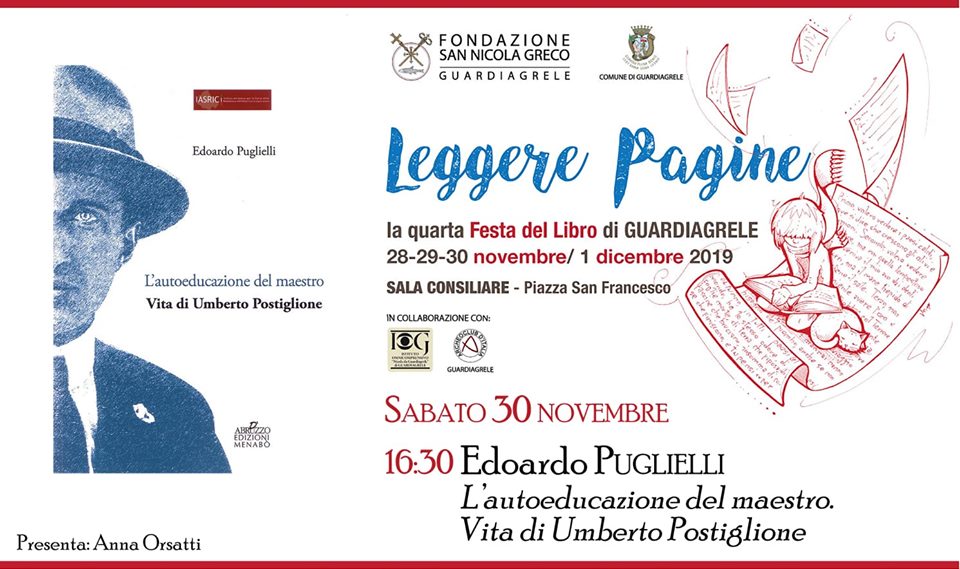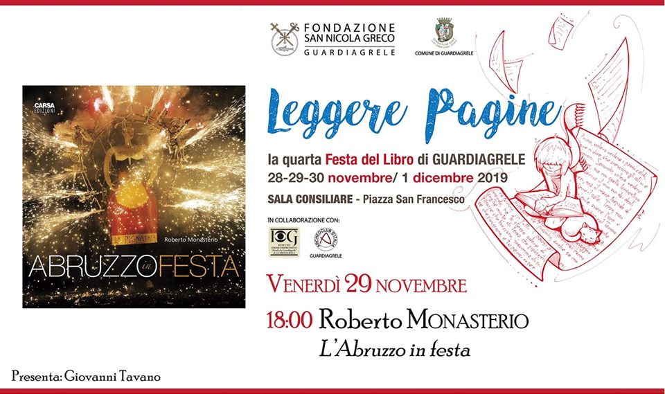 Prenderà il via giovedì 28 novembre la quarta edizione di “Leggere Pagine”, la Festa del Libro di Guardiagrele, promossa dalla Fondazione San Nicola Greco con il patrocinio del Comune e la collaborazione di Archeoclub ed Istituto Omnicomprensivo “Nicola da Guardiagrele”, i cui studenti del Liceo Scientifico saranno impegnati in attività di alternanza scuola-lavoro durante tutti i giorni del festival.