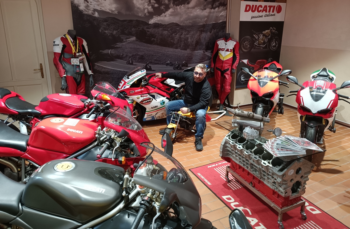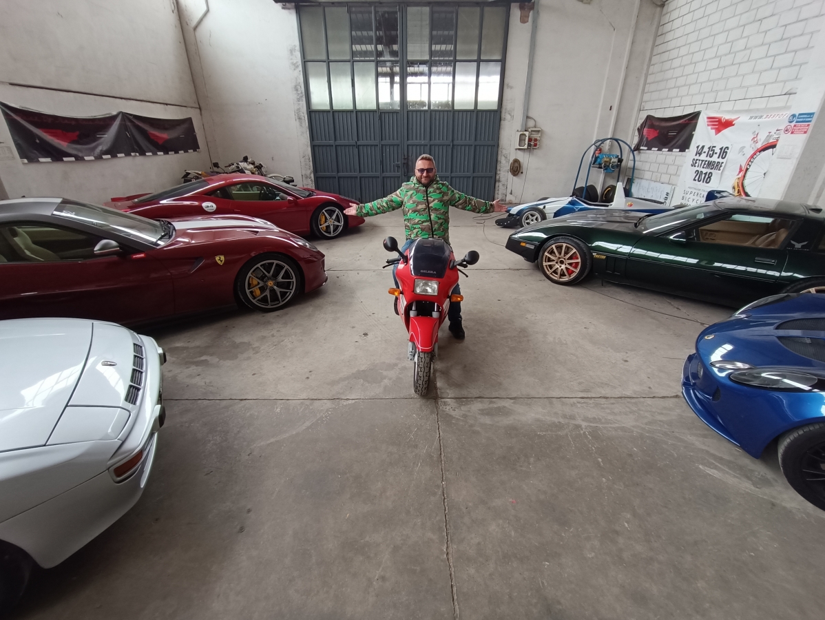 Abbiamo iniziato a parlare di motori, la sua profonda passione gli fa brillare gli occhi, mentre ci incanta con le sue conoscenze, ci immerge nel suo mondo che ai più, può sembrare surreale. Ci accorgiamo di essere con una persona tutt'altro che superficiale, la sua cultura e i suoi ragionamenti ci affascinano, forse vuole mettere in chiaro subito, che al di là del personaggio, c'è molto altro . Lui stesso però, ammette che l'vviamento di un qualsiasi motore, gli genera una forte scarica di adrenalina che gli fa perdere il senno, come dice lui; le vibrazioni fanno scollegare il filo della ragione.