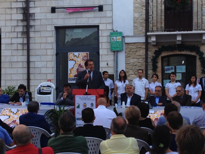 Alla cerimonia di inaugurazione partecipano l'On. Giovanni Legnini, sottosegretario di Stato alla Presidenza del Consiglio; l'assessore regionale all'Agricoltura Mauro Febbo; il sindaco di Guardiagrele Sandro Salvi; il presidente della Fondazione Carichieti Pasquale Di Frischia; il presidente della Carichieti Mario Falconio; il presidente della Camera di commercio di Chieti Silvio Di Lorenzo.