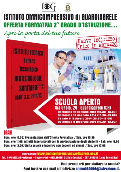 Nei giorni scorsi la Regione Abruzzo ha accolto la proposta del nuovo indirizzo di studi d’istruzione secondaria di secondo grado, Biotecnologie sanitarie, che sarà attivato fin dal prossimo settembre nell’edificio scolastico di Via Grele, in Guardiagrele, che accoglie da decenni il Liceo Scientifico e l’Istituto Tecnico Commerciale (ora Economico). La richiesta è stata avanzata dopo un’attenta indagine statistica e un’accurata disamina, che ha tenuto conto delle richieste dell’utenza e del territorio, delle risorse logistiche effettivamente disponibili nell’istituto, degli sbocchi lavorativi e dei pareri espressi dall’amministrazione comunale di Guardiagrele e dalla Provincia di Chieti. L’auspicio è ora che il nuovo indirizzo di studi, “unico” in Abruzzo, possa diventare in breve tempo un centro di eccellenza capace di ampliare l’offerta formativa, non solo per gli alunni guardiesi ma anche per gli studenti dell’intera provincia e regione, con possibilità - per questi ultimi - di risiedere stabilmente nelle strutture ricettive presenti nel comune. L’Istituto Omnicomprensivo potrà avvalersi, previo accordo con la ASL, del supporto del locale ospedale e delle risorse umane fornite dall’Università degli Studi “G. D’Annunzio” di Chieti. Il titolo di studio conseguito nel corso dei cinque anni offre, infatti, sbocchi professionali che riguardano l’inserimento in aziende ospedaliere, laboratori d’analisi, imprese farmaceutiche e della cosmesi, competenze di pianificazione, gestione e controllo delle strumentazioni di laboratorio e dei sistemi di conservazione nel settore alimentare. Consente, infine, di proseguire gli studi in tutte le facoltà universitarie e nei corsi post-diploma di istruzione e formazione tecnica superiore.