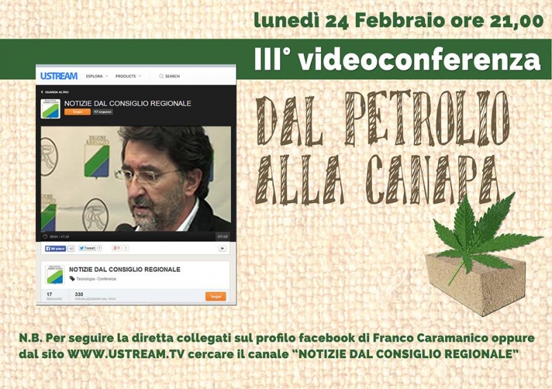 Per la campagna elettorale in vista del voto alle Primarie del centro sinistra, il consigliere regionale di Sel, Franco Caramanico, ha scelto le mille risorse dei web, “un modo semplice ed efficace con il quale voglio entrare soprattutto in contatto con i più giovani” ha spiegato. L’esordio è previsto per domani, lunedì 24 Febbraio alle ore 21,00, con una videconferenza sul tema "DAL PETROLIO ALLA CANAPA". Per connettersi basta cliccare sul seguente link http://www.ustream.tv/channel/notizie-dal-consiglio-regionale.