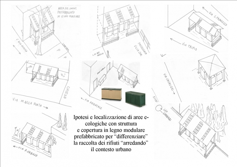 L'’intenzione espressa sui giornali dal Sindaco Salvi di realizzare aree ecologiche non può che farci piacere considerato che: nel maggio del 2005 abbiamo individuato degli spazi, e proposto all'’allora Sindaco Palmerio, con degli schizzi di fattibilità (es. fig. 1) e a costi irrisori, la realizzazione di aree ecologiche.