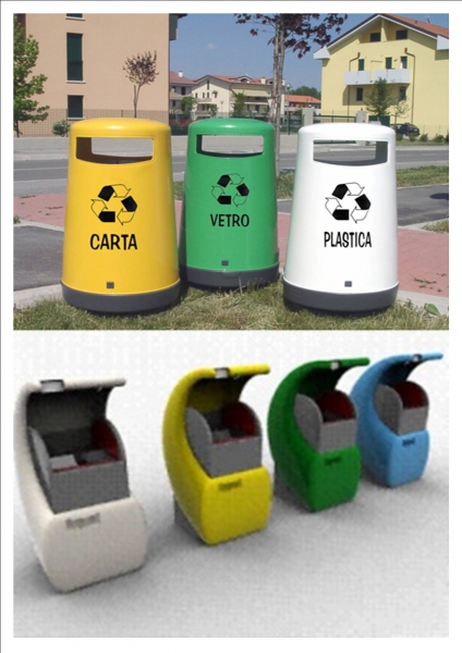 Quindi, nel dicembre 2007, abbiamo proposto, stampando anche un opuscoletto esplicativo, la realizzazione di quei sistemi sotterranei (interrati, semi-interrati, pneumatici, ecc.) per i rifiuti, che oggi il Sindaco sembra aver partorito, per ottimizzare l’'estetica e la produttività della raccolta … e, nel gennaio 2008, anche per non gravare sulle ristrettezze delle casse comunali per l'’impegno finanziario che tale sistema richiede, abbiamo proposto di collocare - forniti dalla ditta appaltatrice la raccolta e lo smaltimento rifiuti - dei cestini (es. fig.2 ma le tipologie sono tantissime e di perfetta integrazione) in modo alternato per la propria indicazione di raccolta ed uno per ciascuna delle due estremità dei tanti vicoli del nostro Centro Storico (es. fig. 3) in modo da non costringere più i cittadini a “stazionare” i rifiuti in casa … e, contemporaneamente, restituire decoro al borgo.