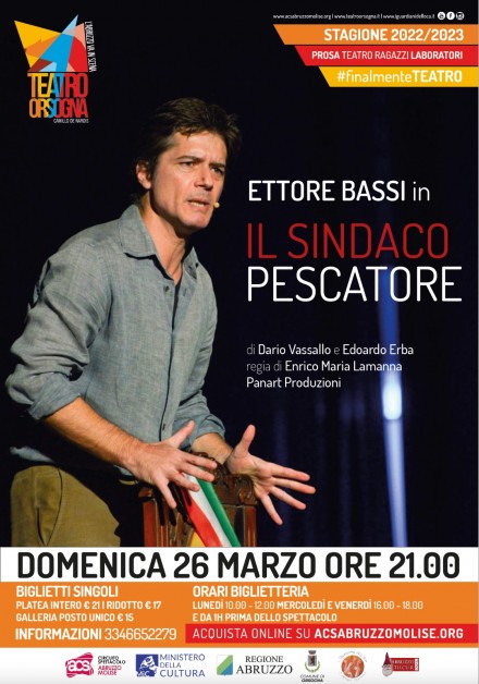 Domenica 26 marzo alle ore 21.00, il celebre e famoso attore Ettore Bassi ci racconterà una storia straordinaria e commovente, quella di un eroe normale, Angelo Vassallo, il Sindaco Pescatore.