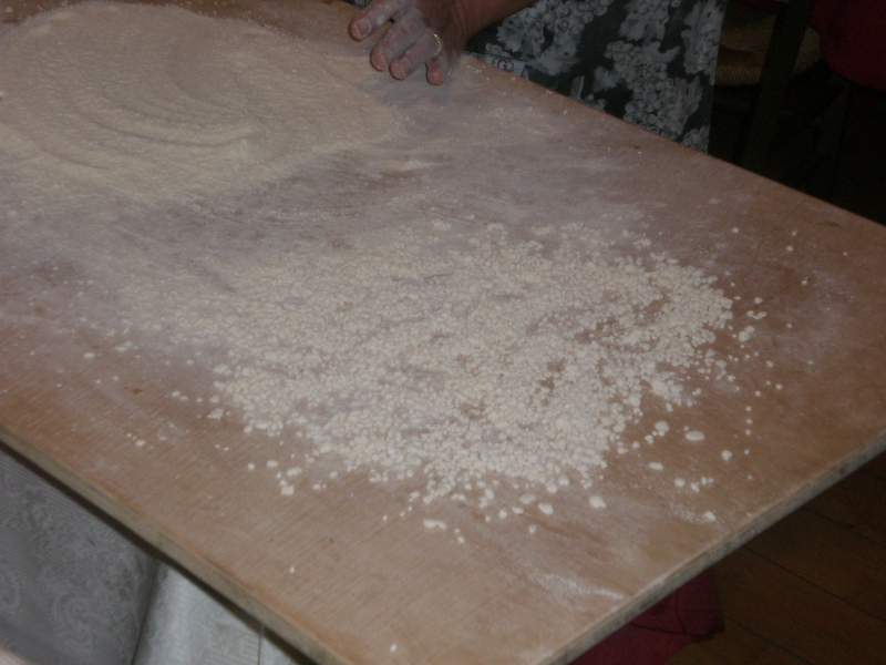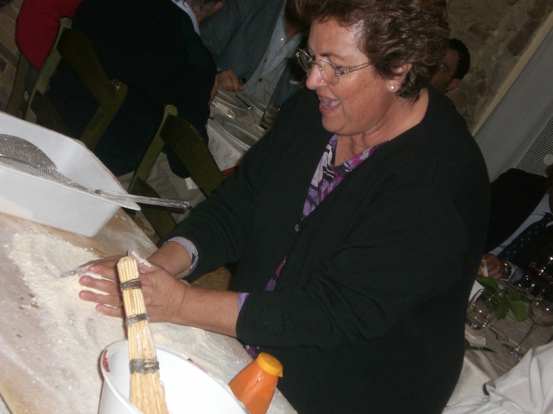 Il frascarello rappresenta un piatto povero della nostra tradizione gastronomica, e può essere definito come cibo del conforto, preparato dalle nonne e legato agli ambienti e ai territori del passato. Ma può essere definito anche come cibo della vita: bagnando una scopetta di saggina e spruzzando velocemente l’acqua sulla farina stessa, si ottengono glomeruli, che una volta setacciati restituiscono i frascarelli, che cucinati con brodo di gallina, permettevano alle donne nutrici di fare il latte. A decretare la vincitrice, una giuria composta da esperti e presieduta da Santino Strizzi. La cena ha previsto un ricco aperitivo cenato, le quattro pietanze preparate dalle contendenti, e il dolce di Santa Chiara ( la pizza dolce).