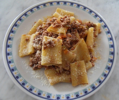 *il ragù dell’aiuto veniva preparato in occasione dei lavori collettivi in campagna che riguardavano la trebbiatura, la vendemmia, la raccolta delle olive, duranti i quali i vicini e i parenti prestavano il loro lavoro(aiuto) in modo solidaristico, in uno scambio di lavoro che veniva ripagato con un gran ragù con il quale si condivano le corde, ma anche i trescatòri(grossi paccheri) o i rigatoni.