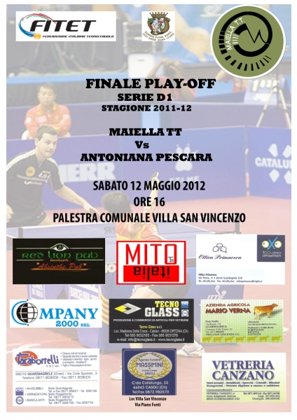Si avvicina la promozione in serie C2 per la Maiella Tennistavolo, che sabato 12 Maggio alle ore 16,00 presso la palestra comunale di Villa San Vincenzo sarà impegnata nel ritorno play-off contro l’Antoniana Pescara.