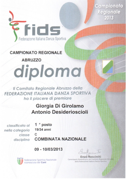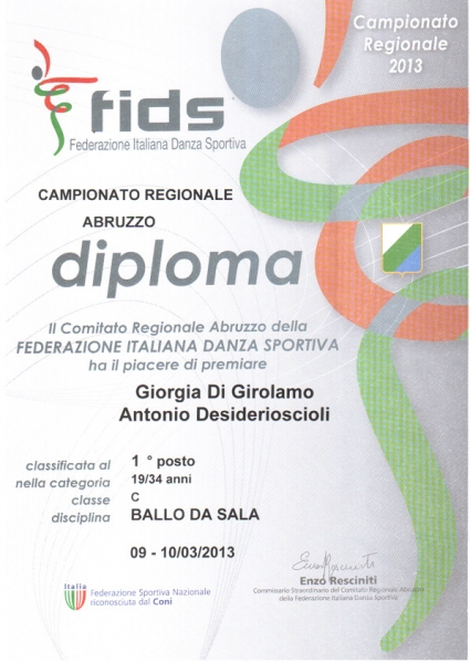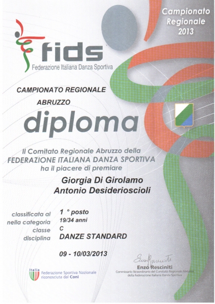 La competizione, tenutasi a Vasto il 10 Marzo 2013, ha visto la partecipazione di numerosi atleti abruzzesi tesserati FIDS, la Federazione Italiana Danza Sportiva, associazione sportiva nazionale riconosciuta dal Coni e di cui fa parte il Comitato Regionale promotore della manifestazione sportiva in questione.
