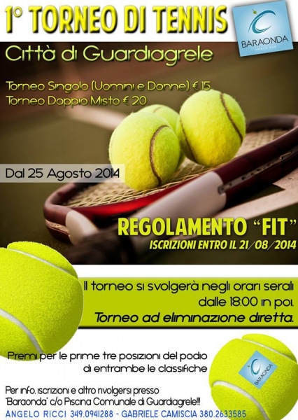 Avrà infatti inzio il 25 Agosto il 1^ "Torneo di Tennis Città di Guardiagrele", una competizione aperta a tutti gli appassionati (che non siano tesserati), di questa disciplina.