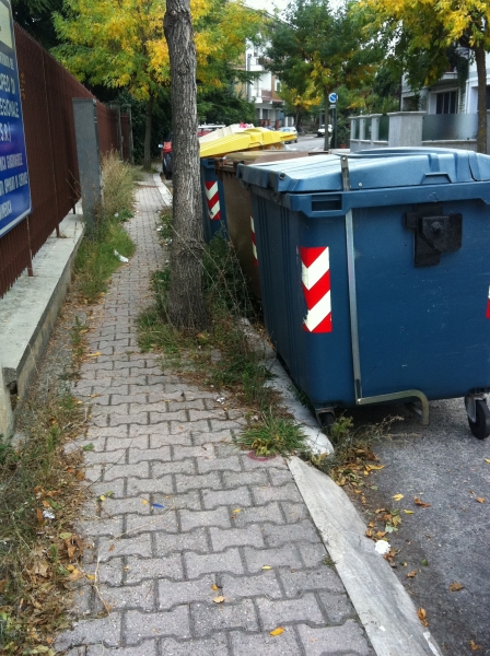 La pavimentazione dei marciapiedi è in pessime condizioni a causa delle sterpaglie e delle radici degli alberi che sollevano la pavimentazione; i tombini delle fogne vengono puliti solo in superficie, a livello stradale, senza realizzare una pulizia più accurata.