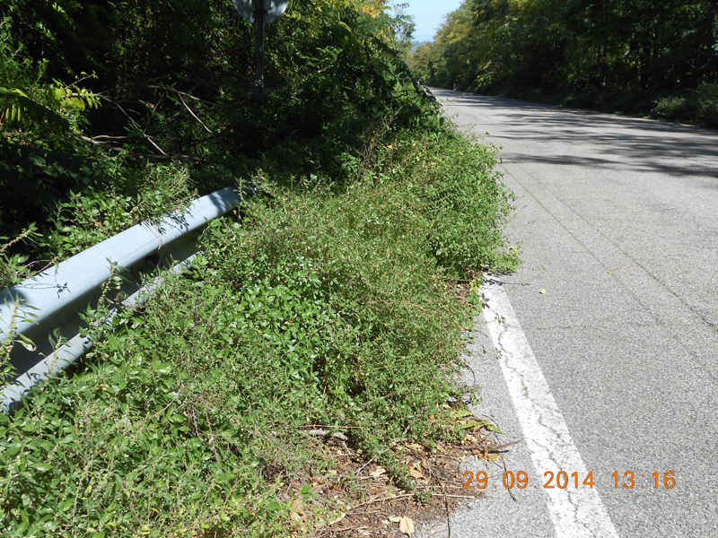 Niente segnaletica orizzontale, quella orizzontale ricoperta dalla vegetazione, auto che procedono a zig zag per evitare buche e avvallamenti. D’estate sembra di partecipare ad una puntata de “l’isola dei famosi” con rami e rovi che occupano la carreggiata, quando piove si deve procedere al centro della strada per timore che cadano rami o alberi addossi, in caso di nevicata viene aperta un pezzo di corsia e si fa lo slalom tra gli alberi caduti.