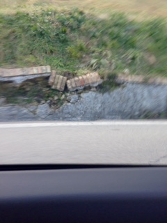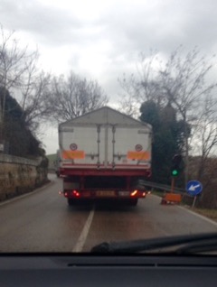 La prima piccola frana invadeva una porzione di carreggiata; sono stati apposti numerosi cartelli per segnalarla e, dopo tre settimane, è stata finalmente sistemata.