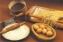 Una volta la massaia era abile e orgogliosa a preparasi da sé la pasta in casa. Certamente è più facile comprarla ma, oltre che essere più economica, quella fatta in casa è più genuina. Si preparano sul tavolo di legno (spianatoia) della cucina 200 gr. di farina di grano duro e 200 gr. di farina “0”; si fa una fontana ed in mezzo si rompono 4 uova intere, che prima vano battute dentro la farina e poi, a poco a poco, incorporate con questa. Si lavora la pasta sul tavolo per 10, 15 minuti, fino a portarla ad una giusta consistenza (aggiungendo, eventualmente, acqua e farina: l’impasto deve essere molto compatto e duro). Si lascia riposare per 10 minuti, quindi si spiana con il matterello o con la più comoda “nonna papera”, spolverando di farina fino a raggiungere la consistenza desiderata: più spessa se si vuole una pasta alla chitarra, più sottile per fettuccine e timballo.